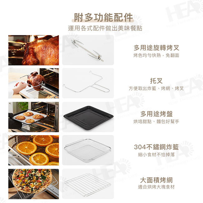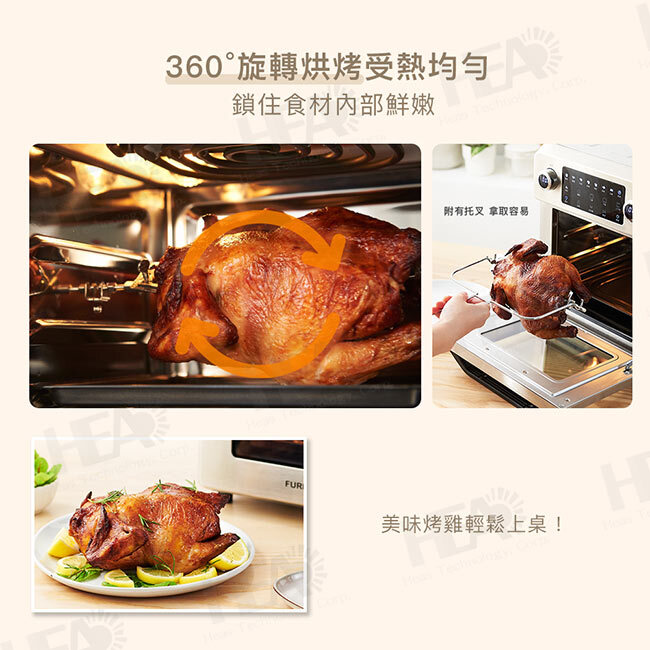 ◎360°旋轉烘烤受熱均勻,鎖住食材內部鮮嫩