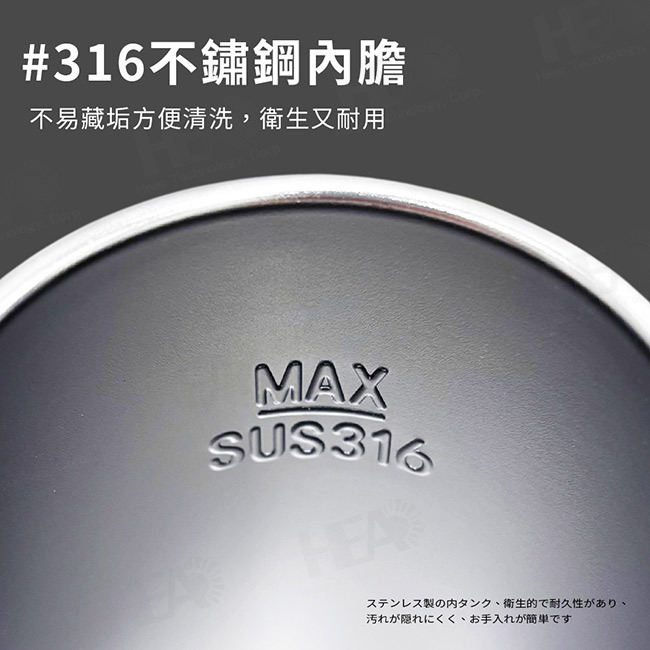 ◎#316不鏽鋼內膽,衛生耐用、不易藏汙好清洗