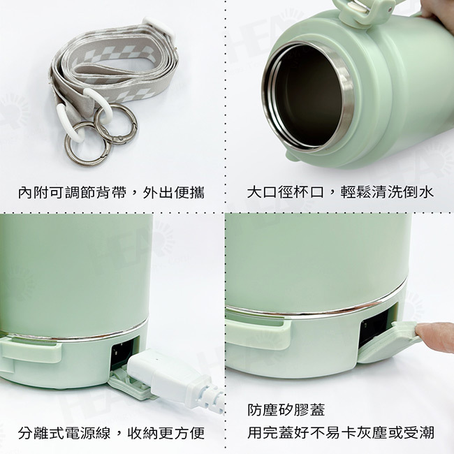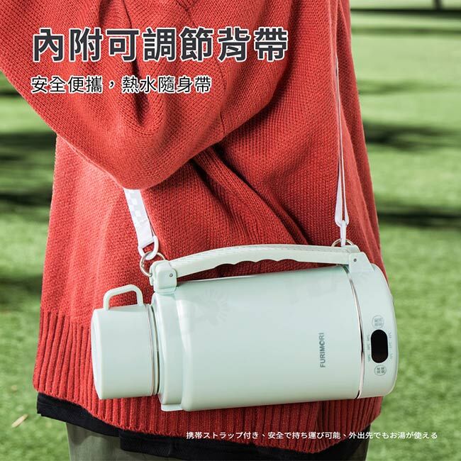 ◎貼心飲水杯蓋設計,搭配內附背帶安全便攜,熱水隨身帶