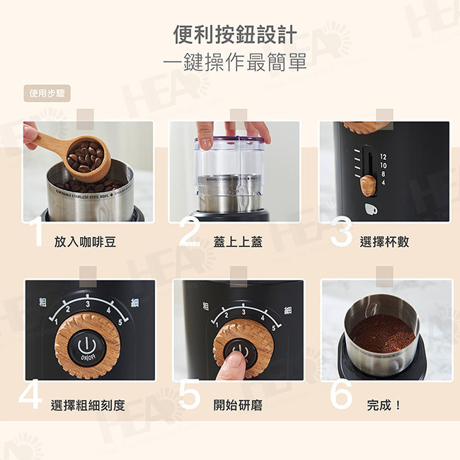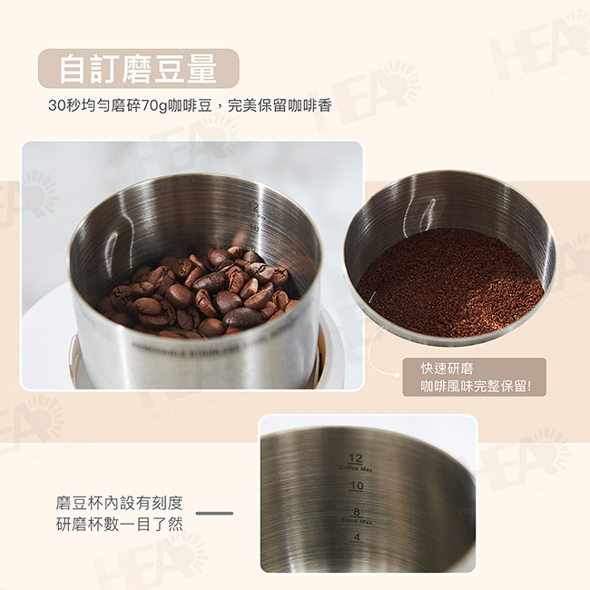 ◎磨豆量可自訂,30秒均勻磨碎70g咖啡豆,完美保留咖啡香