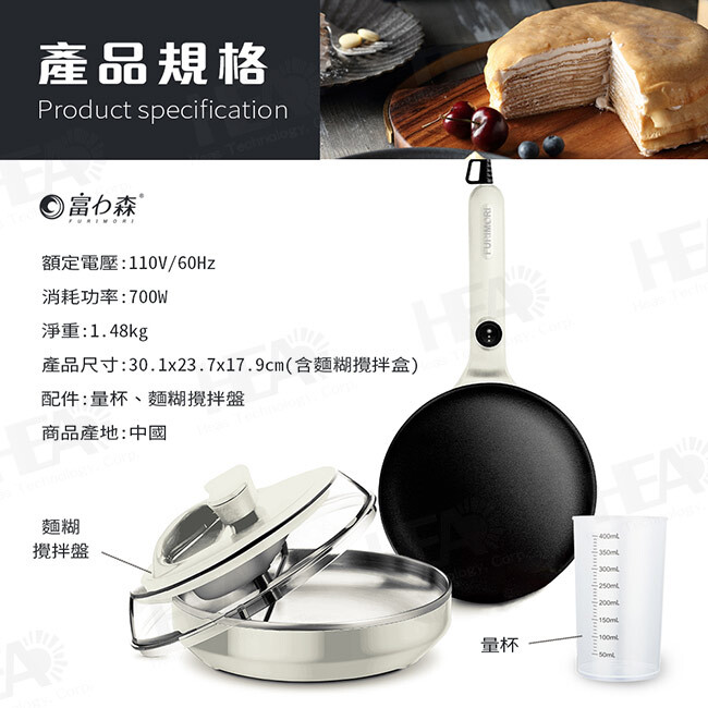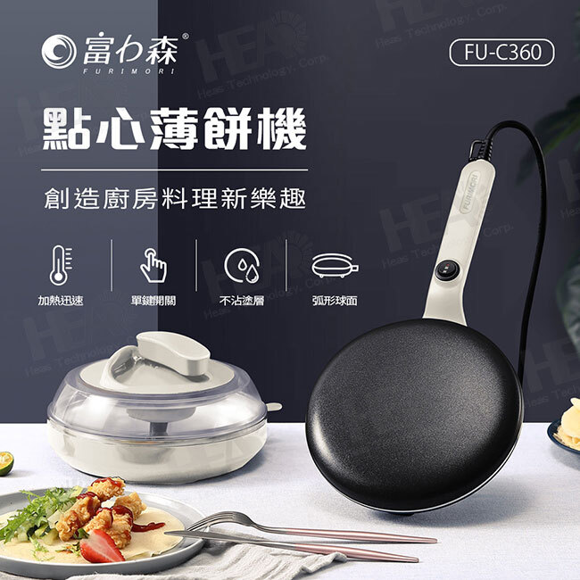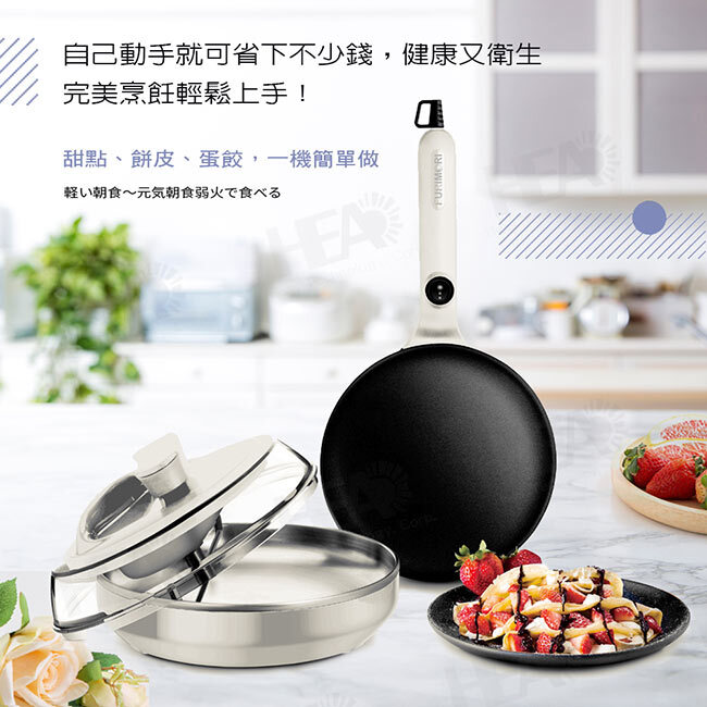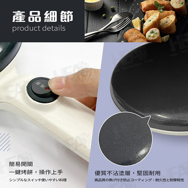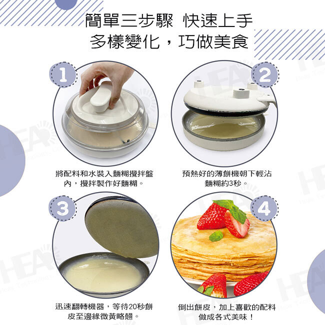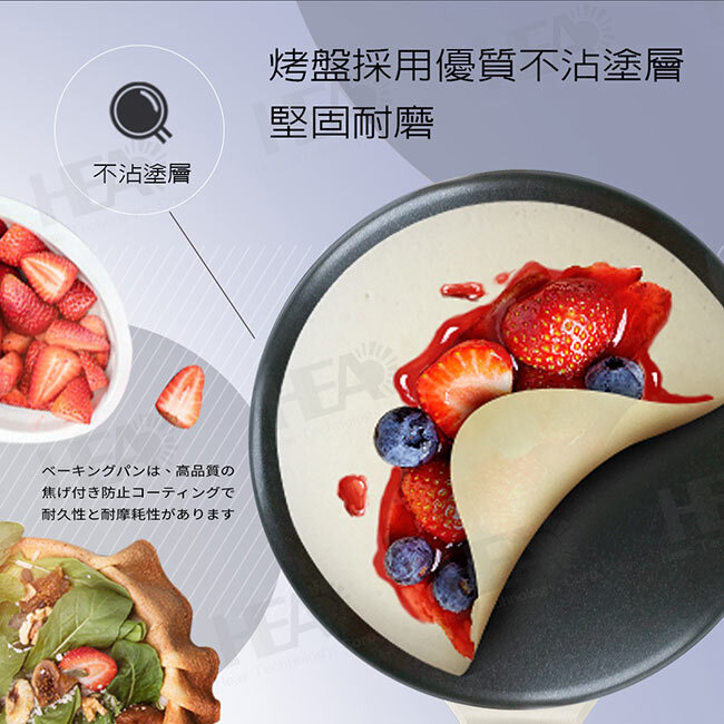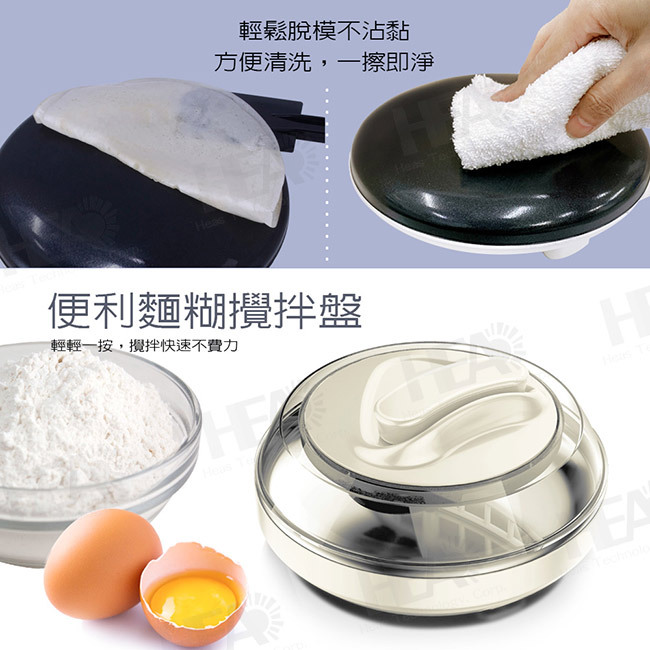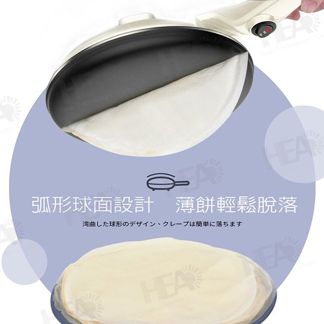 ◎烤盤弧形球面設計,餅漿均勻覆蓋,薄餅輕鬆脫落