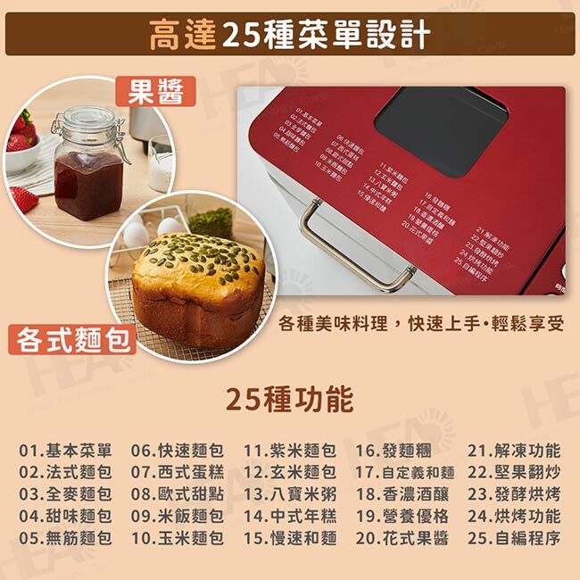 ◎25種操作模式設定,可做蛋糕,果醬,米麵包...等各式美味麵包