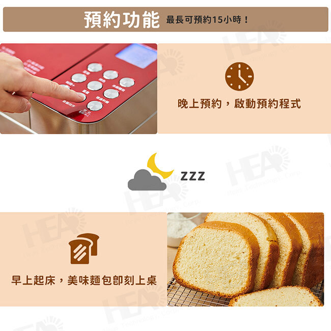 ◎預約設定功能,無需等待,一早就有新鮮麵包享用