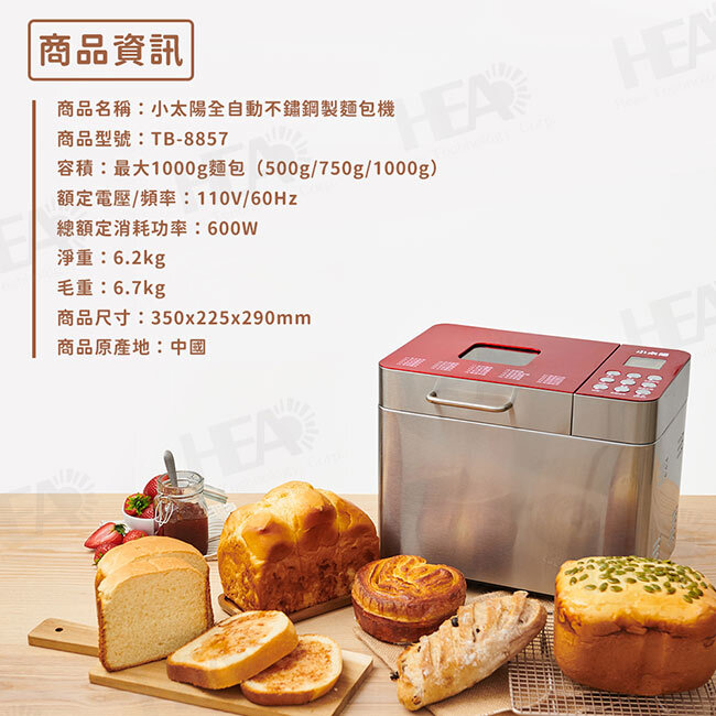 ◎三種麵包重量設計,可選擇500g/750g/1000g麵包