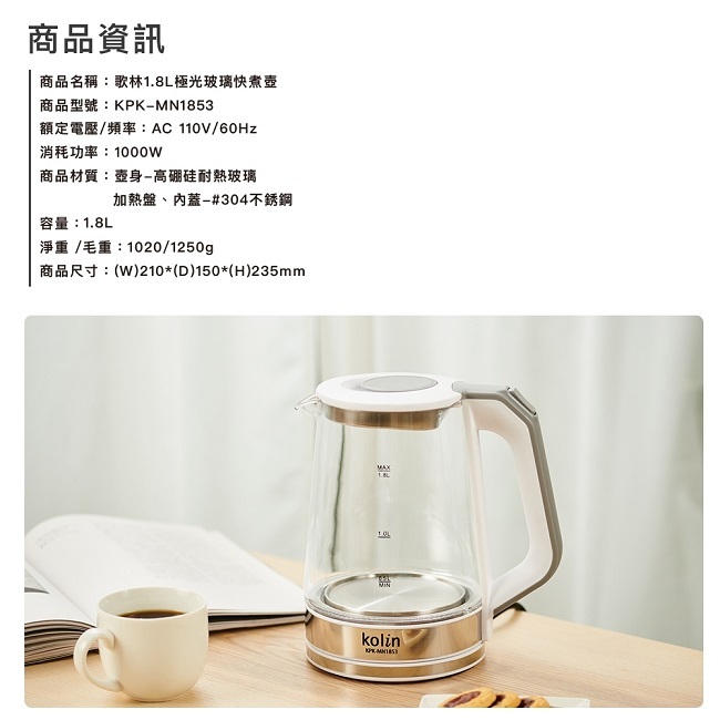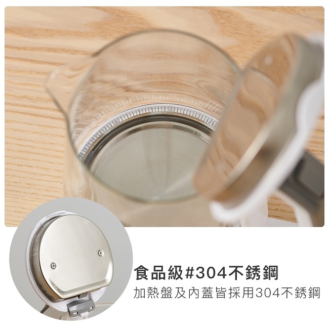 產品材質:加熱盤、內蓋-#304不銹鋼/壺身-高硼硅耐熱玻璃