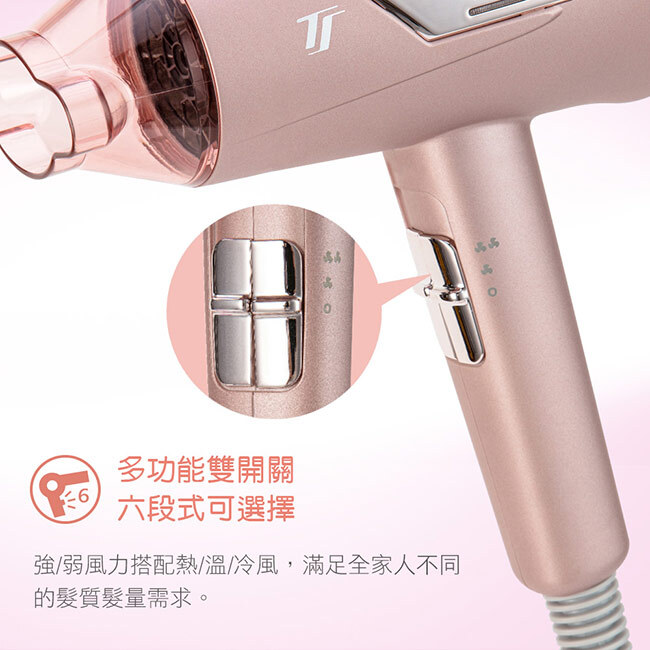 .六段式開關:三段式溫度(冷、溫、熱)+二段式風力(強、弱)