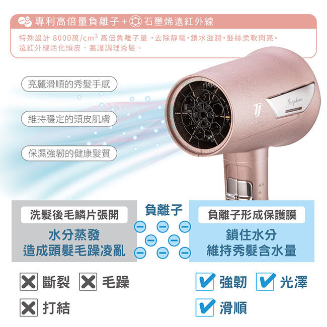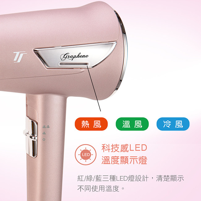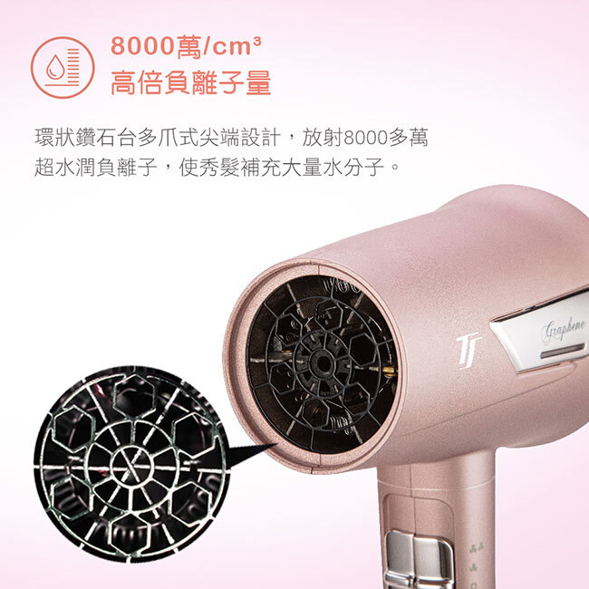 .快乾:極大風量2.3M3/分,超高風速快乾.有效縮短吹髮時間