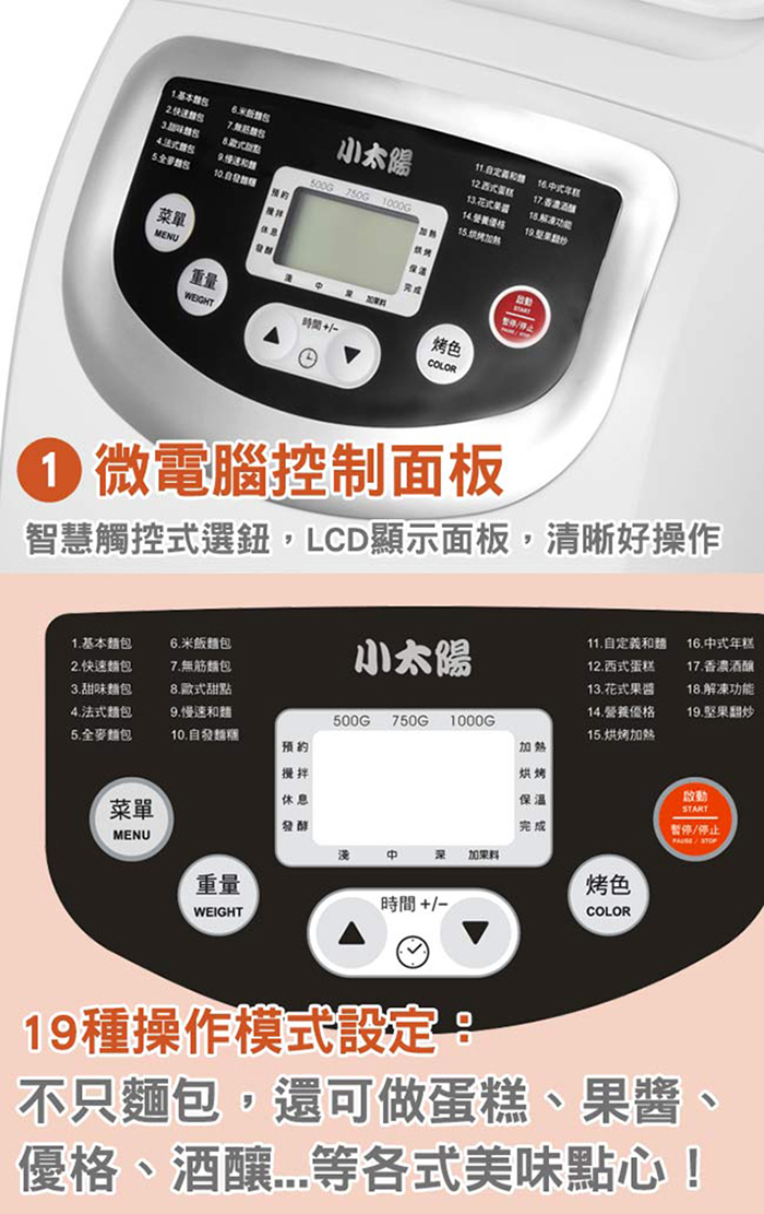 ◎19種操作模式設定,可做蛋糕,果醬,米麵包...等各式美味麵包